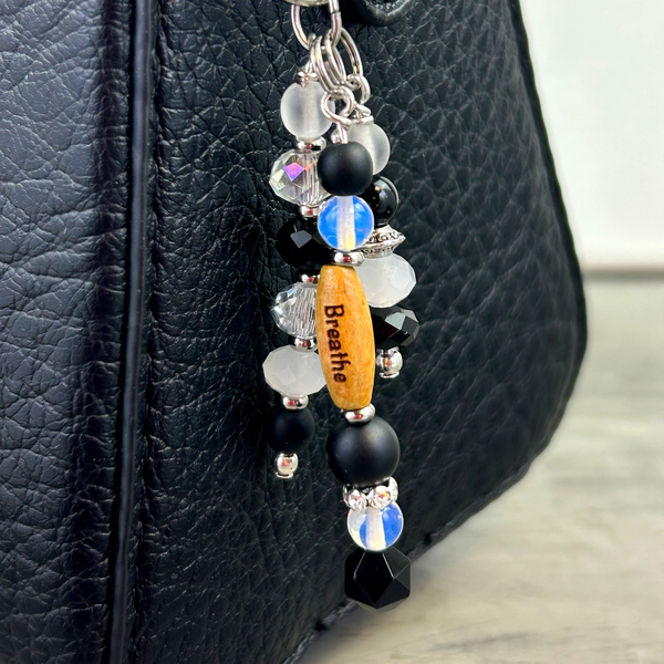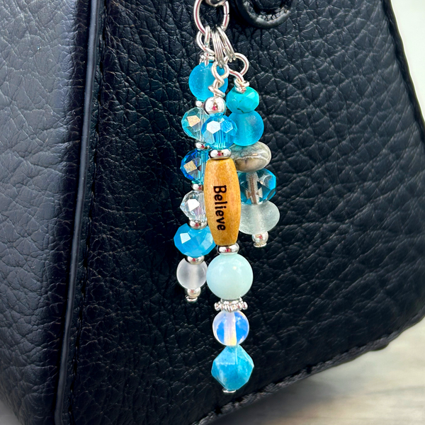 Purse Charms with meaning, get inspired daily with an Inspirational Word Bead Charm, focusing on personal growth and success. Handcrafted with a meaningful word bead, gemstones, and crystals, these charms combine beauty and positive energy to inspire confidence and clarity.